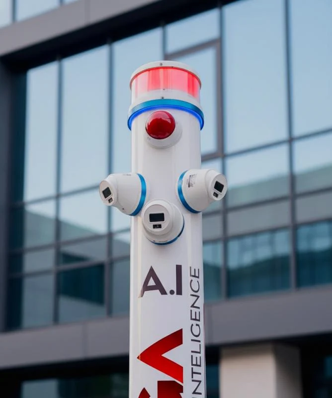 - excelente tecnologia: Equipado com câmeras de excelente resolução e Inteligência Artificial, o Totem é capaz de realizar análises comportamentais e identificar situações de risco;
